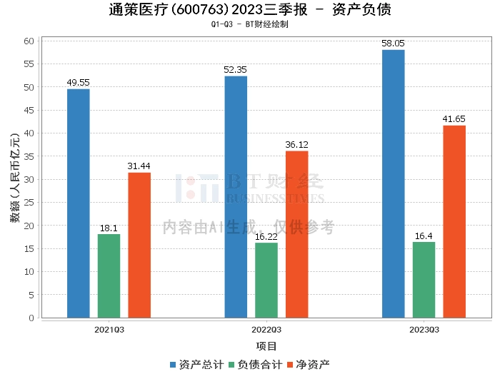 在资产负债方面,通策医疗2023年三季度报告显示,公司的资产总计为58.05亿元,相比上年度末的51.54亿元增长了12.62%。负债合计为16.4亿元,相比上年度末的15.36亿元有所增长。公司的净资产为41.65亿元,相比上年度末的36.18亿元增长了15.15%。资产负债率为28.25%,相比上年度末的29.8%有所下降。这表明公司的资产和净资产均在增长,且负债增长的速度低于资产,整体财务状况良好。