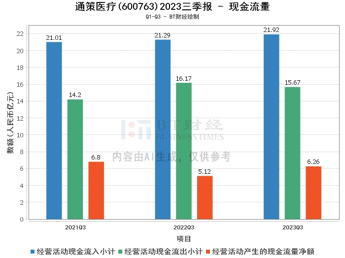 在现金流量方面,公司2023年三季度经营活动产生的现金流量净额为6.26亿元,相比上年同期的5.12亿元增长了22.27%。经营活动现金流入小计为21.92亿元,相比上年同期的21.29亿元有所增长。经营活动现金流出小计为15.67亿元,相比上年同期的16.17亿元略有下降。这表明公司的经营活动现金流量状况良好,现金流入增加,现金流出减少。