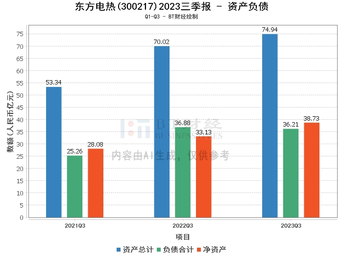 从资产负债方面来看,东方电热2023年三季度的总资产为74.94亿元,相较于上年度末的72.36亿元有所增长。负债总额为36.21亿元,较上年度末的39.25亿元有所下降。净资产为38.73亿元,较上年度末的33.11亿元有显著增长。资产负债率为48.32%,较上年度末的54.24%显著下降。这些数据显示,公司的资产规模在稳步增长,负债规模在逐渐降低,公司的财务状况得到了进一步的改善。