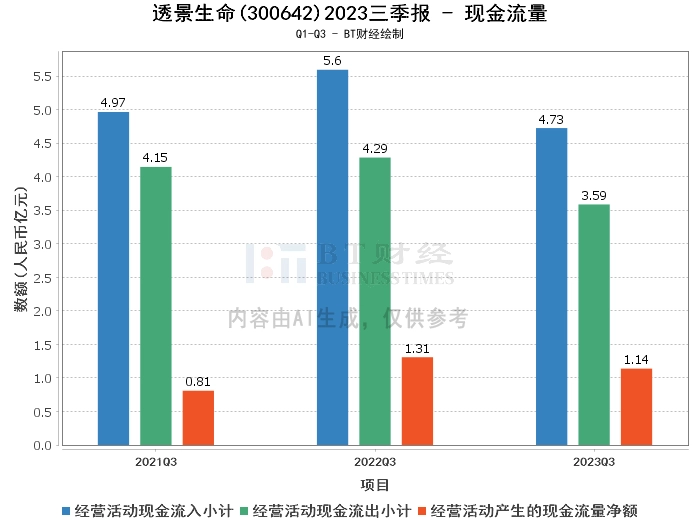 在现金流量方面,透景生命2023年三季度经营活动产生的现金流量净额为1.14亿元,较上年同期的1.31亿元有所下滑。这主要是由于本期较历史同期回款减少影响。