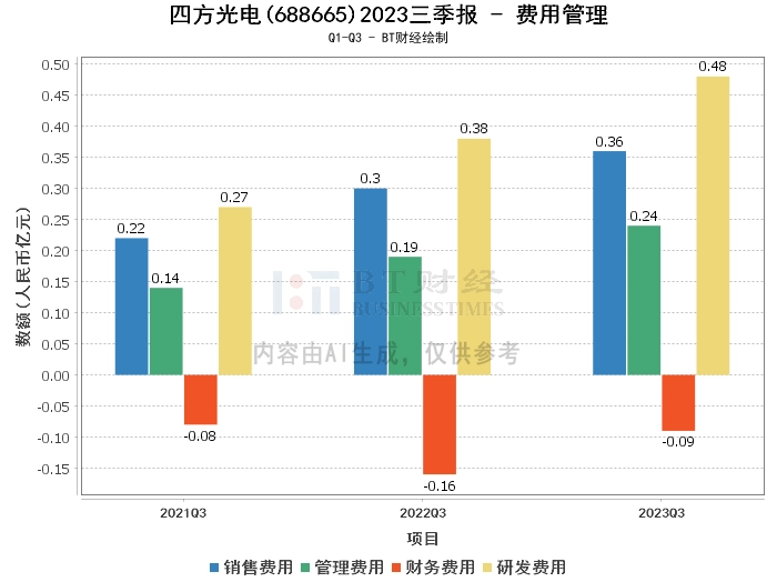 总的来看,四方光电2023年三季度的经营状况良好,营业收入和净利润均实现了同比增长,总资产和净资产也有所增加,资产负债率有所下降,显示出公司的财务状况稳健。然而,净利润增长低于营业收入增长,主要原因是研发费用、销售费用、管理费用的增加。