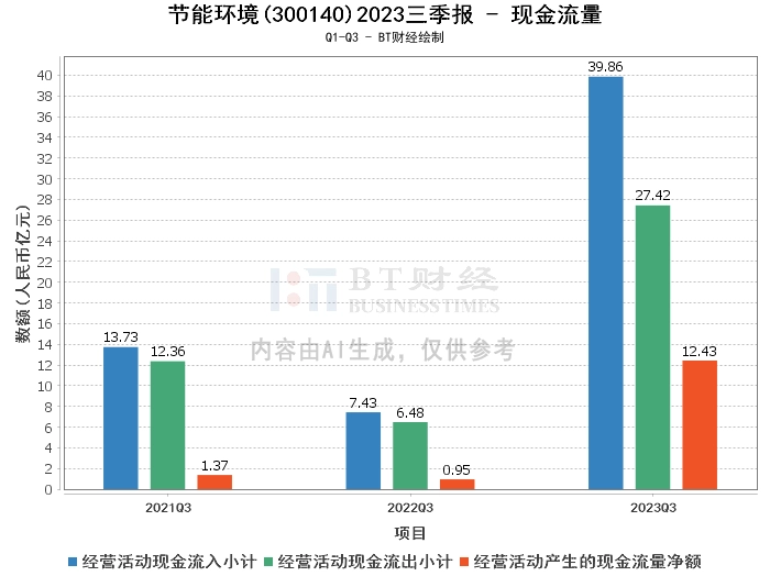 总的来说,节能环境2023年三季度的经营状况稳定,总资产微增,净利润持续上升,现金流量净额有所下滑,但整体上仍保持良好的财务状况。公司在节能环保领域的主导地位以及稳定的营业收入和净利润表明,公司具有较强的盈利能力和市场竞争力。