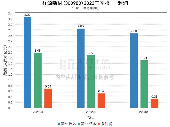【BT财报瞬析】祥源新材2023三季报:总资产增长40.47%,营业收入下滑6.76%,净利润下降36.13%