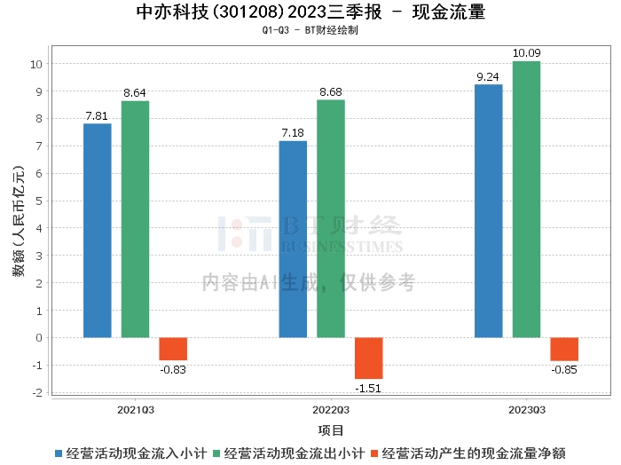 总的来看,中亦科技2023年三季度的经营状况总体稳健,营业收入和净利润的增长表明公司的业务发展良好,现金流量的增加也反映了公司的经营活动效益提升。然而,营业成本的增长也需要引起关注。