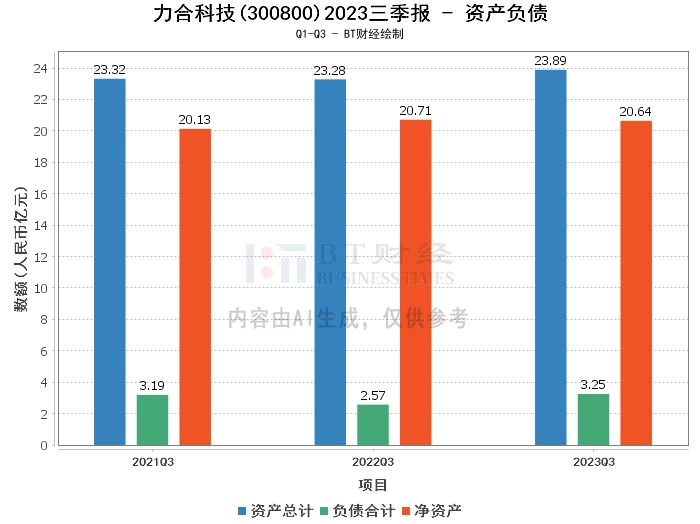 从资产负债方面来看,力合科技2023年三季度的总资产为23.89亿元,相比上年度末的23.7亿元微增0.82%。负债总额为3.25亿元,与上年度末的3.24亿元基本持平。净资产为20.64亿元,较上年度末的20.46亿元微增0.88%。资产负债率为13.61%,较上年度末的13.68%有所下降。这些数据显示,公司的资产规模稳步增长,负债控制得当,整体财务状况稳健。