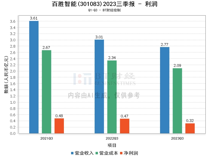 【BT财报瞬析】百胜智能2023三季报:总资产增长,净利润下滑,现金流量净额负增长