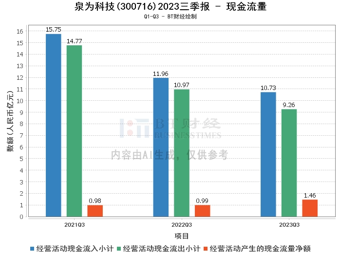 总的来看,泉为科技在2023年三季度的财务状况表现出一些挑战。公司的营业收入和净利润都出现了下滑,资产负债率也有所上升。然而,公司的经营活动产生的现金流量净额却实现了增长,这表明公司的经营活动仍具有一定的现金流入。