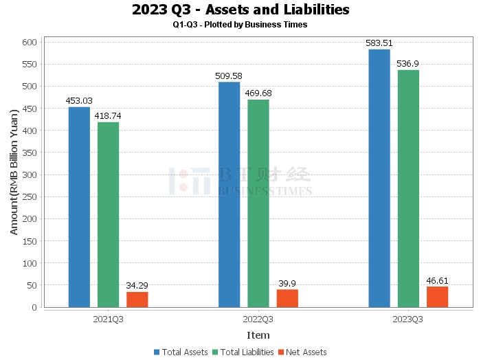 From the perspective of assets and liabilities, the total assets of Suzhou Bank reached 5835.1 billion yuan at the end of the third quarter of 2023, an increase from 5245.49 billion yuan at the end of the previous year. The total liabilities were 5369.01 billion yuan, compared to 4840.87 billion yuan at the end of the previous year. Net assets were 466.09 billion yuan, compared to 404.62 billion yuan at the end of the previous year. The asset-liability ratio was 92.01%, a slight decrease from 92.29% at the end of the previous year.