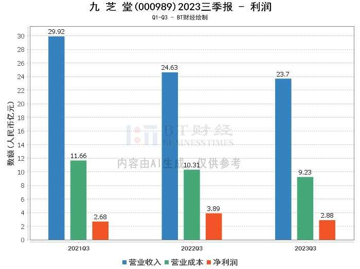 【BT财报瞬析】九芝堂2023三季报:资产总计增长,净利润有所下滑,现金流量净额大幅度下降