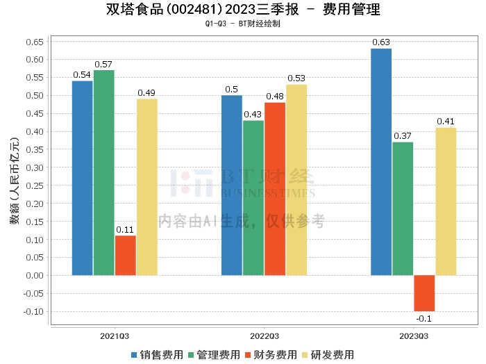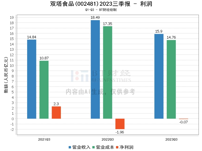 在利润方面,双塔食品2023年三季度的营业收入为15.9亿元,较上年同期的18.49亿元有所下降。营业成本为14.76亿元,较上年同期的17.35亿元有所减少。毛利率为7.19%,较上年同期的6.14%有所提高。这些变化主要是由于公司的汇兑收益增加,即征即退的增值税退税款增加,以及计提的存货减值损失减少。