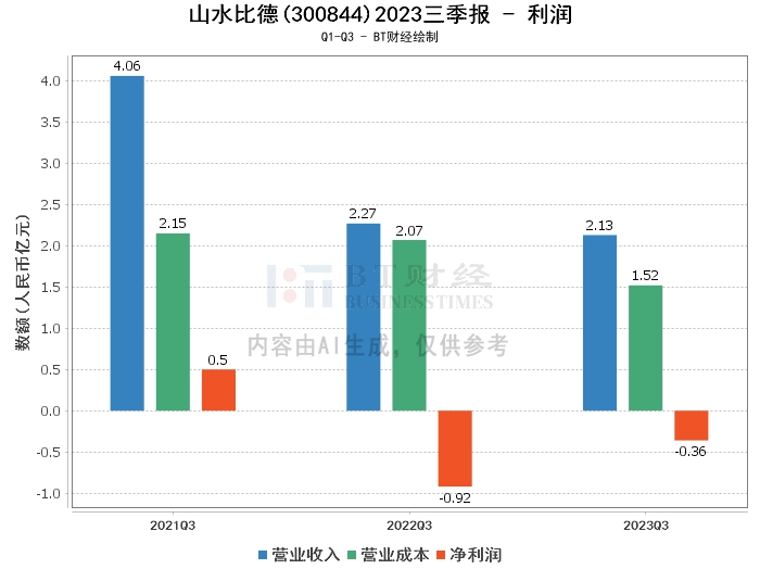 【BT财报瞬析】山水比德2023三季报:总资产、负债总额和净资产均有所下降,营业收入和营业成本同步减少