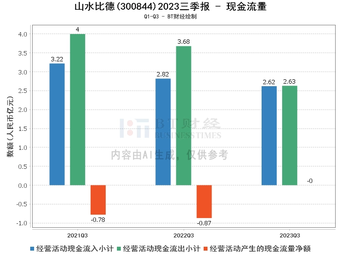 在现金流量方面,山水比德的经营活动现金流入小计由上年同期的2.82亿元降至本报告期的2.62亿元,经营活动现金流出小计也由上年同期的3.68亿元降至本报告期的2.63亿元。这表明公司在经营活动方面的现金流入和流出均有所减少。