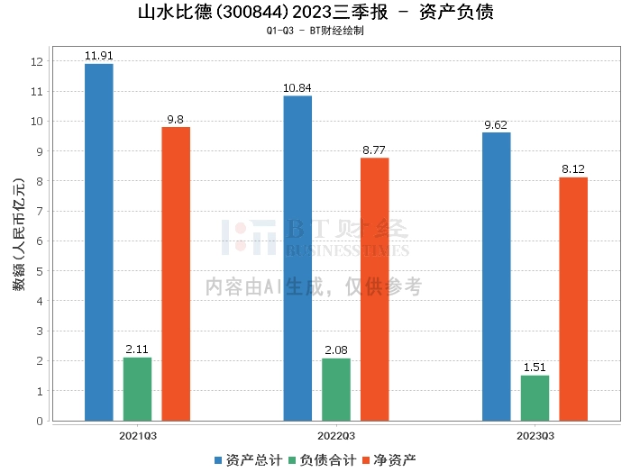 【BT财报瞬析】山水比德2023三季报:总资产、负债总额和净资产均有所下降,营业收入和营业成本同步减少