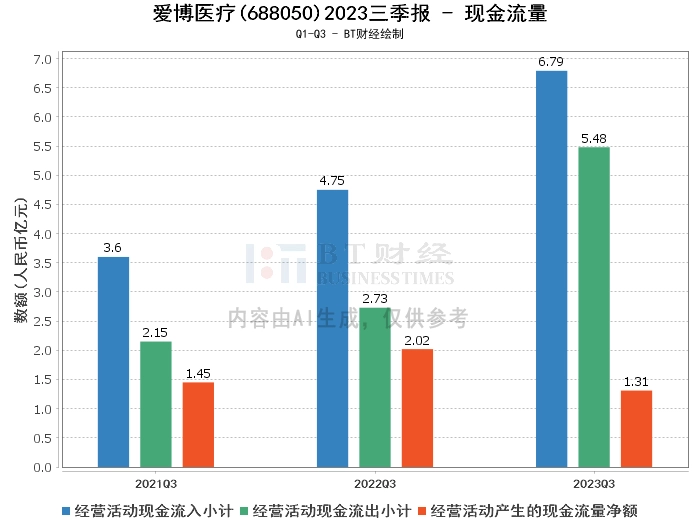综上所述,爱博医疗2023年三季度的经营状况整体良好,营收和净利润均实现了较大幅度的增长,同时公司也在积极扩大研发投入,推动新产品的研发和上市。然而,经营活动产生的现金流量净额下降,显示出公司在原材料采购、税费缴纳以及研发投入等方面的压力。