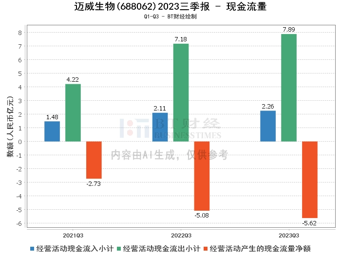 在现金流量方面,迈威生物2023年前三季度的经营活动现金流入小计为2.26亿元,经营活动现金流出小计为7.89亿元,经营活动产生的现金流量净额为-5.62亿元。这可能反映出公司在扩大规模和投资研发的过程中,现金流出压力较大。