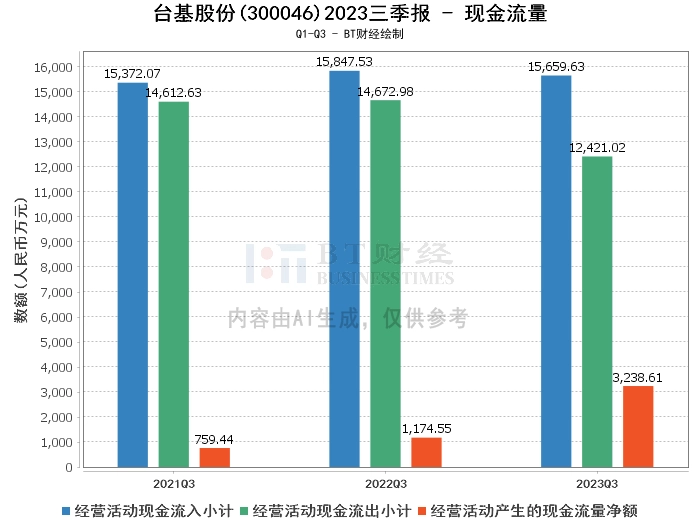 综上所述,台基股份2023年三季度的经营状况总体稳健。在营业收入有所下降的情况下,公司通过有效的成本控制,实现了营业利润和净利润的增长。同时,公司的资产规模在稳步扩大,负债规模有所收缩,整体财务状况良好。经营活动现金流量净额的大幅增长,反映出公司的经营活动产生的现金流量能力增强。