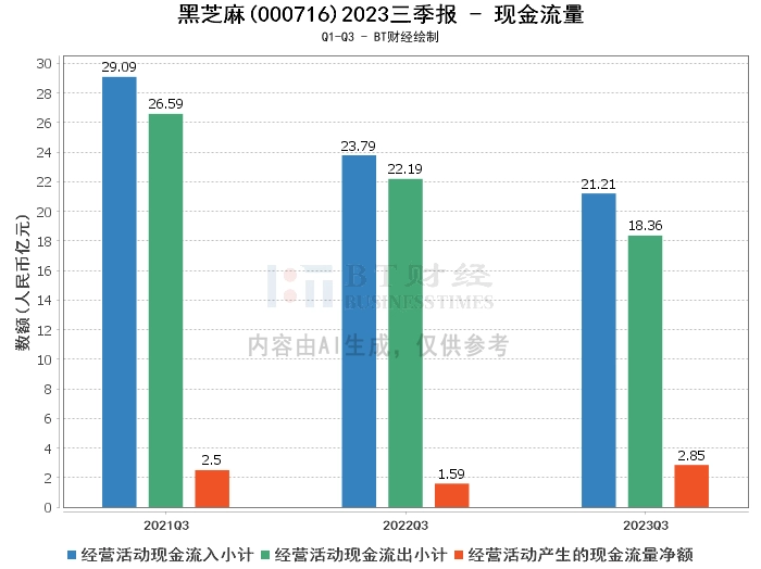在现金流量方面,公司2023年三季度经营活动产生的现金流量净额为2.85亿元,较上年同期的1.59亿元有所增长。经营活动现金流入小计为21.21亿元,较上年同期的23.79亿元有所减少。经营活动现金流出小计为18.36亿元,较上年同期的22.19亿元有所减少。这显示出公司在现金流管理上的稳健。