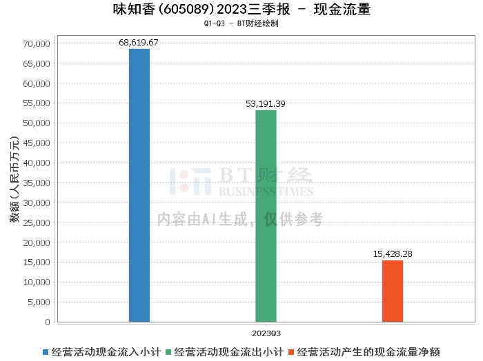综上所述,味知香公司在2023年三季度的经营状况总体稳健,资产规模在增长,负债规模也有所增加,但总体上,公司的财务状况保持稳健。营业收入在增长,但由于成本的控制,营业利润和净利润略有下降。经营活动产生的现金流量净额在增长,现金流入也在增长,现金流出在控制中,显示出公司现金流管理的效果。