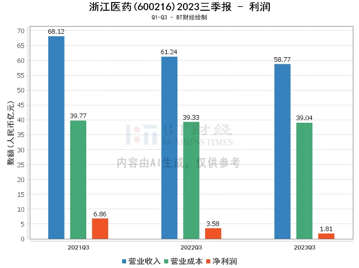 【BT财报瞬析】浙江医药2023三季报:生命营养品销售下滑,现金流量净额显著增长