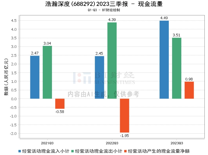 综上所述,浩瀚深度2023年三季度的经营状况总体良好,营业收入、营业利润和净利润均有显著增长,现金流量状况也有所改善。同时,公司也持续加大研发投入,以保持技术领先优势,这对于公司的长期发展是非常有利的。