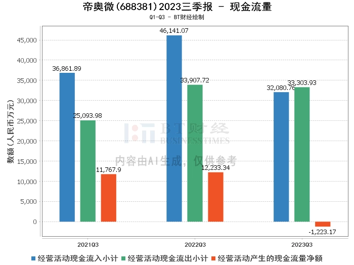 综上所述,帝奥微在2023年前三季度的经营状况受到了一定的压力,营业收入和净利润均有所下降,同时经营活动产生的现金流量净额也出现了大幅下滑。但值得注意的是,公司在研发投入方面表现出了显著的增长,这表明公司正在积极布局未来,寻求新的增长点。同时,公司的主营业务毛利率保持稳定,显示出公司在产品结构调整和成本控制方面的努力。