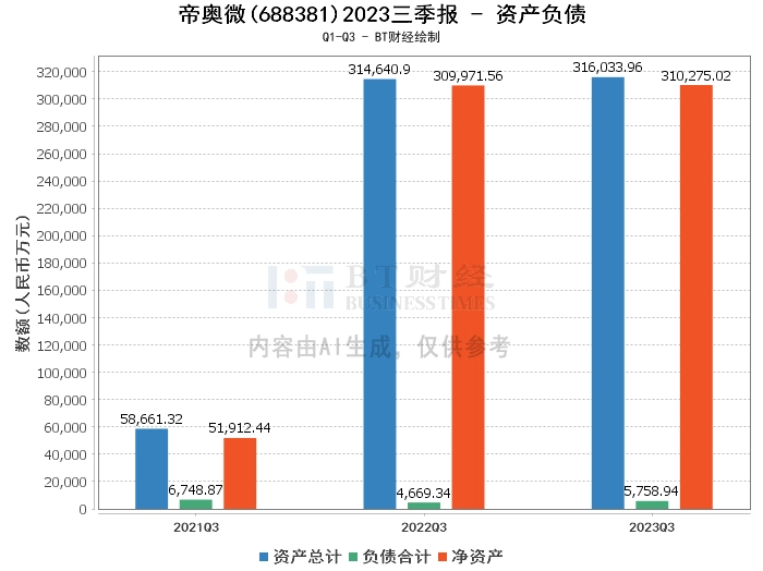 在资产负债方面,2023年三季度末,帝奥微的总资产为31.6亿元,较上年度末的31.72亿元略有下降。负债合计为5758.94万元,相比上年度末的4941.27万元有所增加。净资产为31.03亿元,较上年度末的31.22亿元略有减少。资产负债率为1.82%,较上年度末的1.56%有所上升。