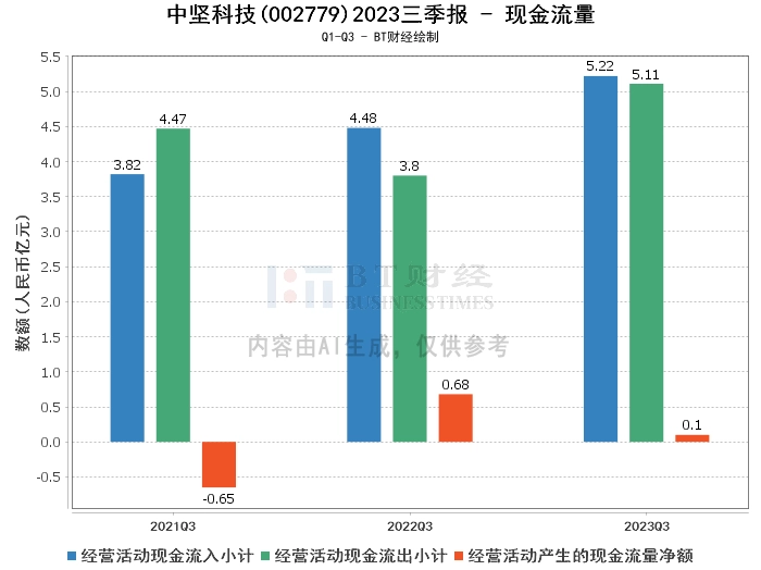 综上所述,中坚科技在2023年三季度的经营状况整体稳健,资产状况良好,负债水平得到了控制,盈利能力得到了提升,但现金流量状况存在一定的压力。对于投资者来说,可以关注公司未来的经营情况和现金流量状况,以便做出更准确的投资决策。