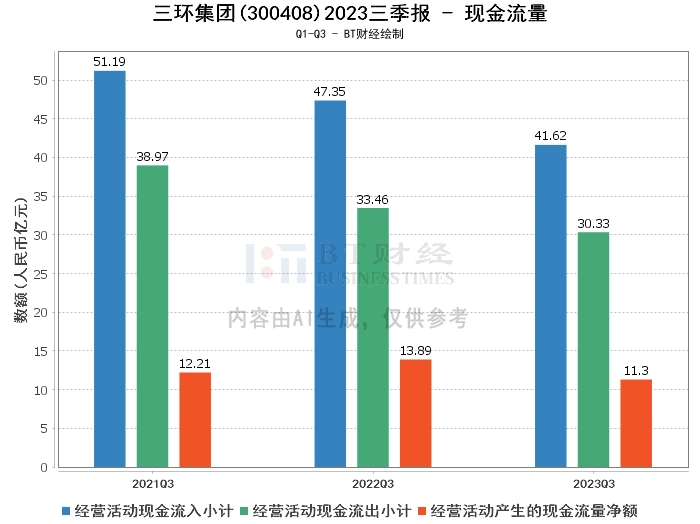 综上所述,三环集团在2023年三季度面临了一些挑战,包括行业需求景气度较弱,以及全球宏观经济的波动等。但公司通过开拓产品市场、加快技术创新速度、优化工艺和控制成本等措施,稳健应对。尽管公司的部分财务指标出现了下滑,但总体上,公司的经营状况仍然稳健。