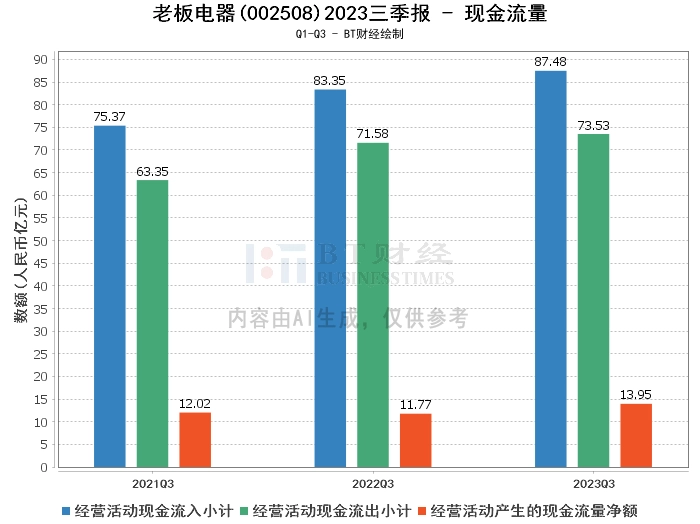 综上所述,老板电器2023年三季度的经营状况良好,营收和净利润均实现了同比增长,资产负债状况稳健,现金流状况良好。这表明公司在厨电行业中的龙头地位稳固,业绩表现优秀。