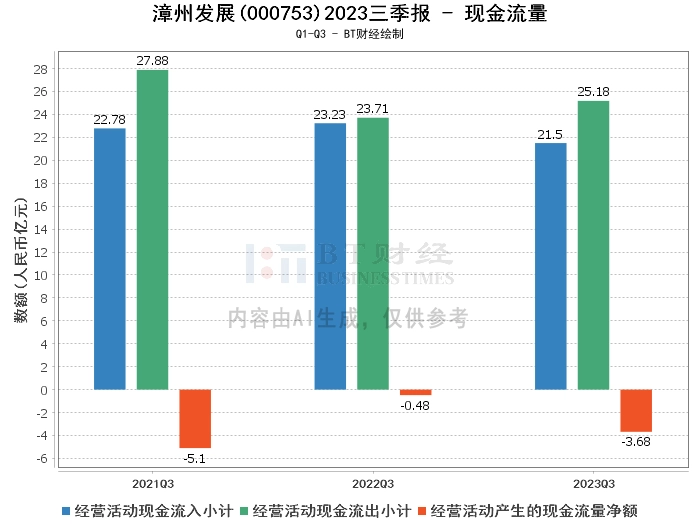 综上所述,漳州发展在2023年三季度的经营状况总体稳定,新能源、生态环保等业务的推进带动了公司的增长。然而,由于营业成本的增加,公司的毛利率和净利润有所下降。此外,公司的现金流入和现金流出也出现了一定的波动。