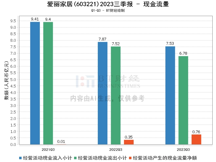 在现金流量方面,爱丽家居的经营活动产生的现金流量净额从上年同期的3531.26万元增长到本报告期末的7573.82万元,增长幅度为114.48%。经营活动现金流入小计为7.53亿元,经营活动现金流出小计为6.78亿元。这一变化的主要原因是三季度采购增加,应付款未到账期,购买商品支付的现金减少。