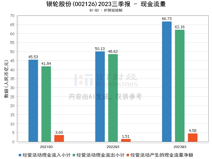 在现金流量方面,银轮股份2023年三季度的经营活动产生的现金流量净额为4.58亿元,相比上年同期的1.51亿元增长了202.20%。这主要系销售商品收到的现金增加所致。
