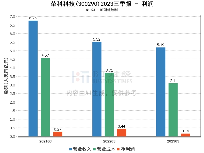 综上所述,荣科科技在2023年三季度的经营状况总体稳定,资产负债结构得到优化,利润水平有所提高,现金流管理有所改善。然而,公司的营业收入和净利润有所下滑,这可能是由于公司在扩大市场和研发投入方面的增加。因此,投资者在投资荣科科技时,需要综合考虑公司的经营状况和行业前景。