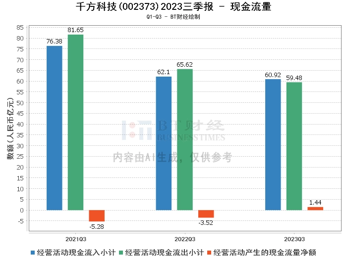 在现金流量方面,千方科技2023年三季度的经营活动产生的现金流量净额为1.44亿元,较上年同期的-3.52亿元实现大幅增长,增长率达到140.98%,主要系本期提高库存管理效率、人工成本及费用支出减少所致。