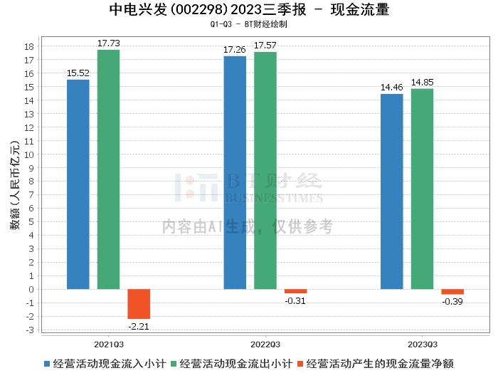 从现金流量来看,公司2023年三季度的经营活动现金流入为14.46亿元,较上年同期的17.26亿元有所减少。经营活动现金流出为14.85亿元,较上年同期的17.57亿元也有所减少。