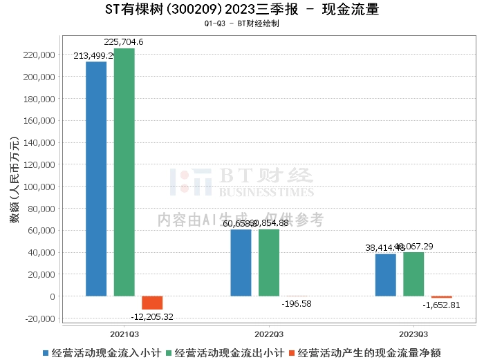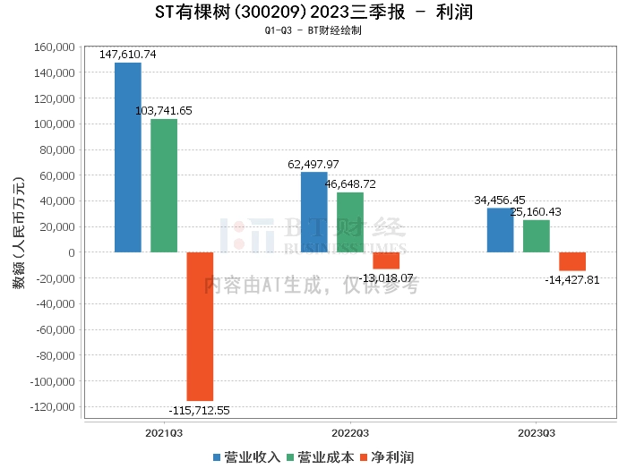 【BT财报瞬析】ST有棵树2023三季报:资产负债率上升,营业收入下滑,现金流量净额大幅下降