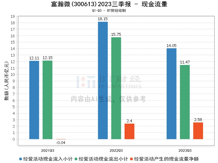 在现金流量方面,富瀚微2023年三季度的经营活动产生的现金流量净额为2.58亿元,相比上年同期的2.4亿元,增长了7.63%。这表明公司的经营活动产生的现金流量在稳步增长,现金流状况良好。