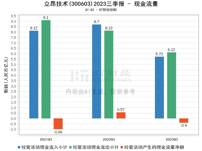 再来看看立昂技术的现金流量情况。2023年三季度,公司经营活动产生的现金流量净额为-3967.01万元,相比上年同期的5726.5万元,下降了169.27%。这意味着公司在过去的一年中,经营活动产生的现金流量面临了一定的压力。
