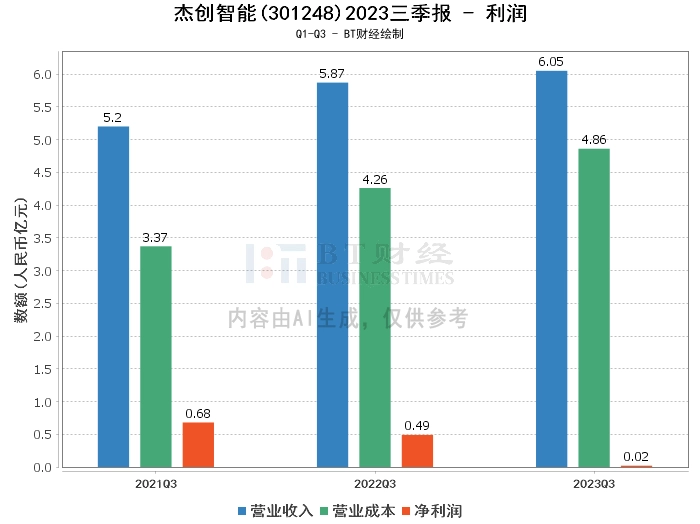 【BT财报瞬析】杰创智能2023三季报:资产负债微调,营收增长,净利润承压