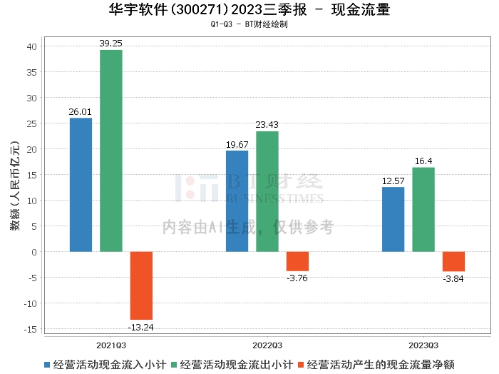 综上所述,华宇软件2023年三季度的经营状况相比上年同期有所下滑。公司的资产和负债规模均有所缩小,营业收入和营业成本均有所下降,现金流量净额也有所下降。这些都表明,公司在经营活动中面临一定的压力。