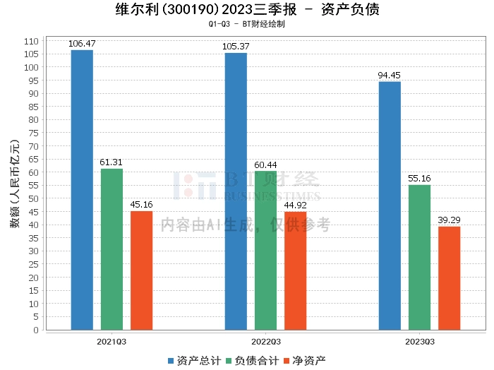 从资产负债方面来看,维尔利公司的总资产在本报告期末为94.45亿元,相较于上年度末的99.06亿元有所下降。负债合计为55.16亿元,较上年度末的59.4亿元有所减少。这表明公司在资产和负债的管理上较为稳健。商誉保持在8亿元,净资产为39.29亿元,较上年度末的39.66亿元略有下降。资产负债率为58.4%,较上年度末的59.96%有所下降,显示出公司负债管理的效果。