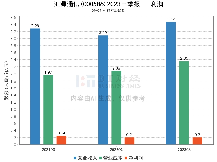 【BT财报瞬析】汇源通信2023三季报:总资产微增,净利润稳定,现金流量净额下降显著