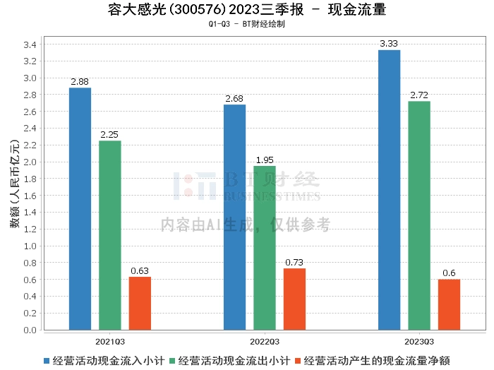综上所述,容大感光2023年三季度的经营状况整体良好,资产规模扩大,负债规模稳定,盈利能力提高,现金流入能力增强。但是,公司需要注意经营活动产生的现金流量净额的下降,这可能会对公司的经营活动产生一定的影响。