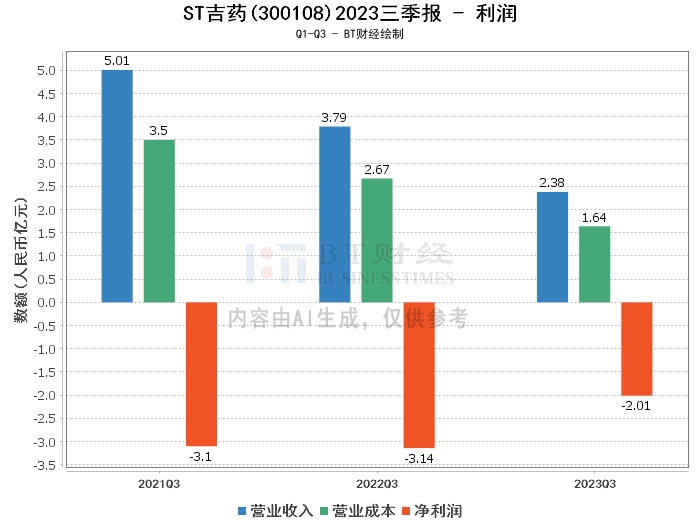 【BT财报瞬析】ST吉药2023三季报:营业收入及利润下滑,现金流量净额大幅减少