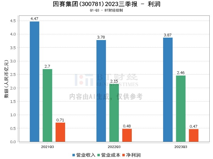 【BT财报瞬析】因赛集团2023三季报:营业收入微增,净利润稳定,现金流量净额大幅下滑