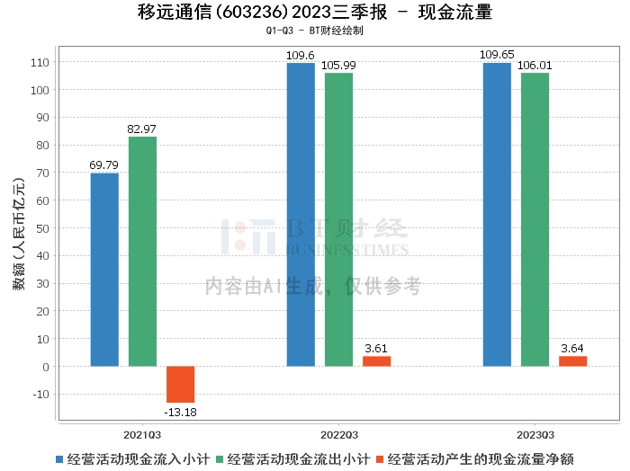 综上所述,移远通信2023年三季度的经营状况面临一定压力。在资产负债方面,公司的总资产和负债都有所增长,但净资产和资产负债率的变化显示出公司的负债压力增大。在利润方面,公司的营业收入、营业利润和净利润都出现了下滑,毛利率和净利率也有所下降,显示出公司的盈利能力下降。在现金流量方面,公司的经营活动产生的现金流量净额有所增长,但现金流入和流出基本持平,显示出公司的经营活动现金流量状况基本稳定。