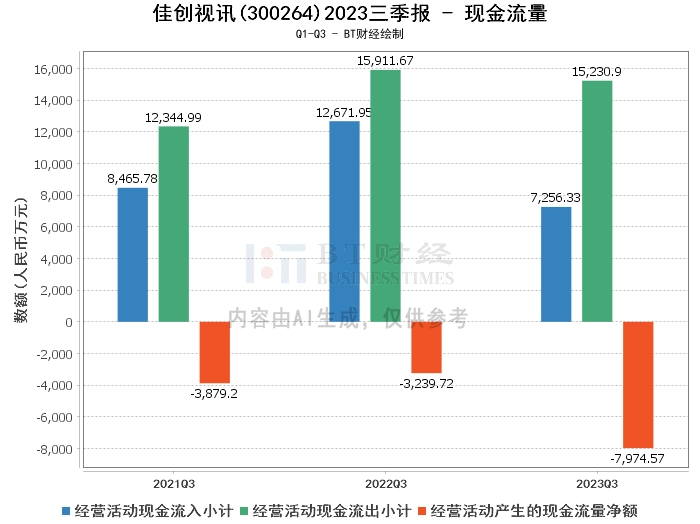 【BT财报瞬析】佳创视讯2023三季报:资产负债率下降,营业收入减少,现金流量净额负增长