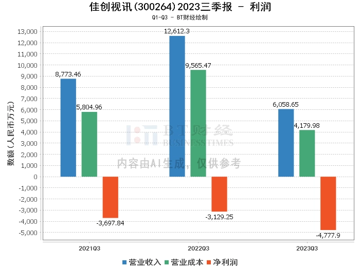 【BT财报瞬析】佳创视讯2023三季报:资产负债率下降,营业收入减少,现金流量净额负增长