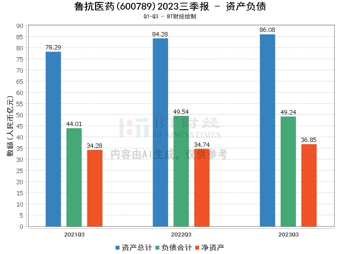 从资产负债方面看,2023年三季度末,鲁抗医药的总资产为86.08亿元,相比上年度末的87.28亿元略有下降,负债合计为49.24亿元,较上年度末的52.2亿元有所减少。公司的净资产为36.85亿元,较上年度末的35.07亿元有所增加。资产负债率为57.2%,较上年度末的59.82%有所下降,显示出公司财务结构的稳健。