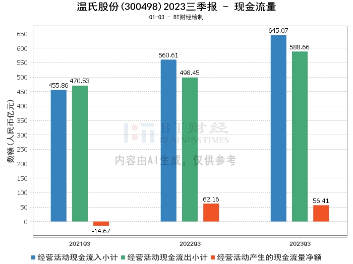 综上所述,温氏股份2023年三季度的经营状况较为困难,公司的负债增加,净资产减少,营业收入虽有所增加,但由于成本增加和投资收益减少等因素,导致公司的净利润大幅下滑,经营活动产生的现金流量也有所减少。这些都表明公司在经营管理和财务状况上存在一定的问题。